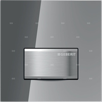 Przycisk uruchamiający Geberit typ 50 do systemu spłukiwania pisuarów z pneumatycznym uruchamianiem spłukiwania, kwadratowy: 13x13x1.2cm, Szkło dymione, Materiał=Cynkowy odlew ciśnieniowy / szkło