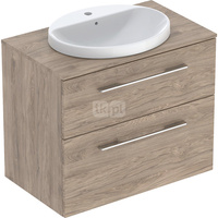 Zestaw szafki z blatem pod umywalkę Geberit Selnova Square, B79.1cm, H70.3cm, T50.2cm, z dwiema szufladami, orzech włoski hickory, z umywalką wpuszczaną w blat, z przelewem, z otworem na baterię