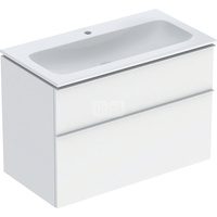 Zestaw umywalki meblowej Geberit iCon slim rim, z szafką pod umywalkę, z dwoma szufladami i zestawem odpływowo-przelewowym do umywalki: B=90cm, Umywalka: biały /KeraTect, Korpus i front: biały / lakierowany na wysoki połysk, Uchwyt: biały / powlekany pros