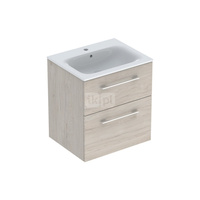 Zestaw umywalki meblowej Geberit Selnova Square, slim rim, z szafką pod umywalkę, z dwoma szufladami: B1=58.8cm, T=50.2cm, Otwór na baterię=Na środku, Przelew=Widoczny, Orzech włoski hickory jasny