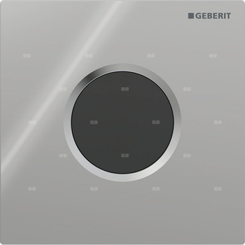 Przycisk uruchamiający Geberit typ 10 do zaworu spłukującego do pisuarów z pneumatycznym uruchamianiem spłukiwania, płyta i przycisk: lakierowane na kolor chrom matowy, z powłoką easy-to-clean, pierścień ozdobny: chrom błyszczący