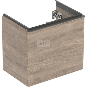 Szafka pod umywalkę Geberit Acanto, z szufladą i szufladą wewnętrzną, krótka: Szerokość umywalki=60cm, Korpus i front: orzech hickory / melaminowa struktura drewna, Uchwyt: lava / malowany proszkowo, matowy