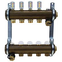 Rozdzielacz do ogrzewania podłogowego HERZ 9-obieg. mosiądz GW 1'' x GZ 3/4'' + zawór napełn/spust + odpowietrznik