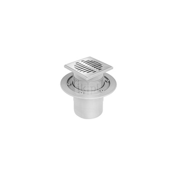 Wpust podłogowy wykonany z ABS z odpływem 110/50mm, czyszczony od góry z kratką ze stali nierdzewnej115x115mm