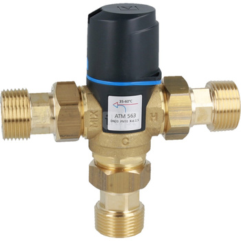 Zawór regulacyjny termostatyczny do wody ciepłej AFRISO ATM 563 ze śrubunkami mosiądz GZ 1'', DN 20, zakres temp. 35-60'C, Kvs 2.5 m3/h, maksymalna temperatura 90'C, maksymane ciśnienie 10 bar