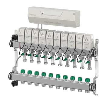 Rozdzielacz do ogrzewania podłogowego COMAP Secos 9-obieg. stal nierdzewna GW 1'' x GZ 3/4'' z inteligentnym sterownikiem natężenia przepływu i temperatury