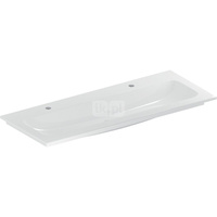 Umywalka GEBERIT iCon Light podwójna 2-stanowiskowa prostokątna, biała / KeraTect, 1200mm, bez otworu na baterię, bez odpływu przelewowego, półka od ściany