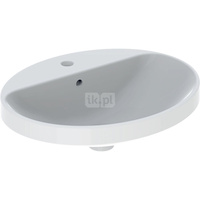 Umywalka GEBERIT Variform eliptyczna, biała, 550mm, bez otworu na baterię, wpuszczana w blat, z odpływem przelewowym, bez półki