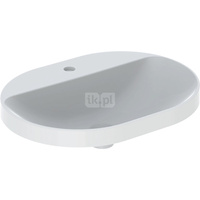 Umywalka GEBERIT Variform owalna, biała, 550mm, bez otworu na baterię, wpuszczana w blat, bez odpływu przelewowego, bez półki