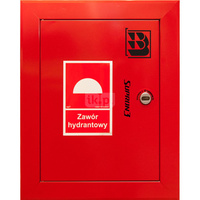 Zawór hydrantowy pożarowy typ ZH-52 wraz z obudową. Obudowa 400 wnękowa. Znak B, zamek OTS, kolor RAL3000