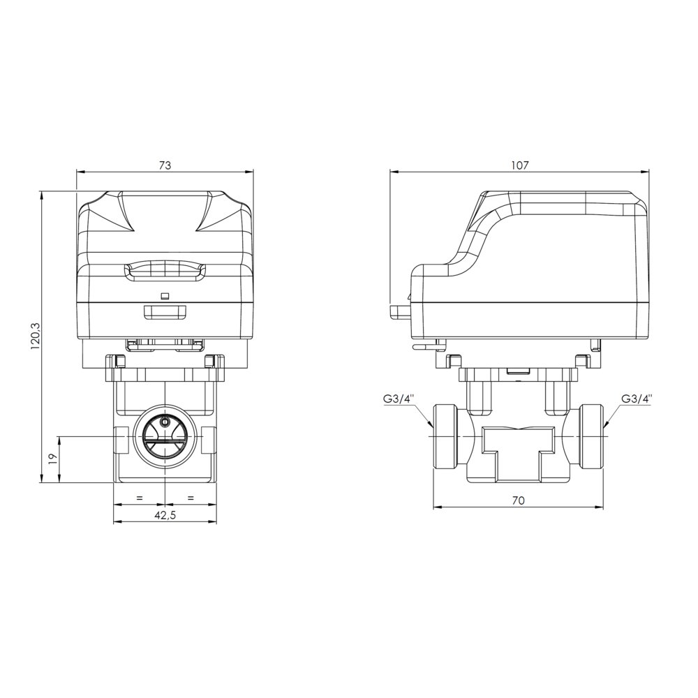 2-drogowy zawór strefowy AZV 452, DN15, G3/4", Kvs 10, 230 V AC, NO