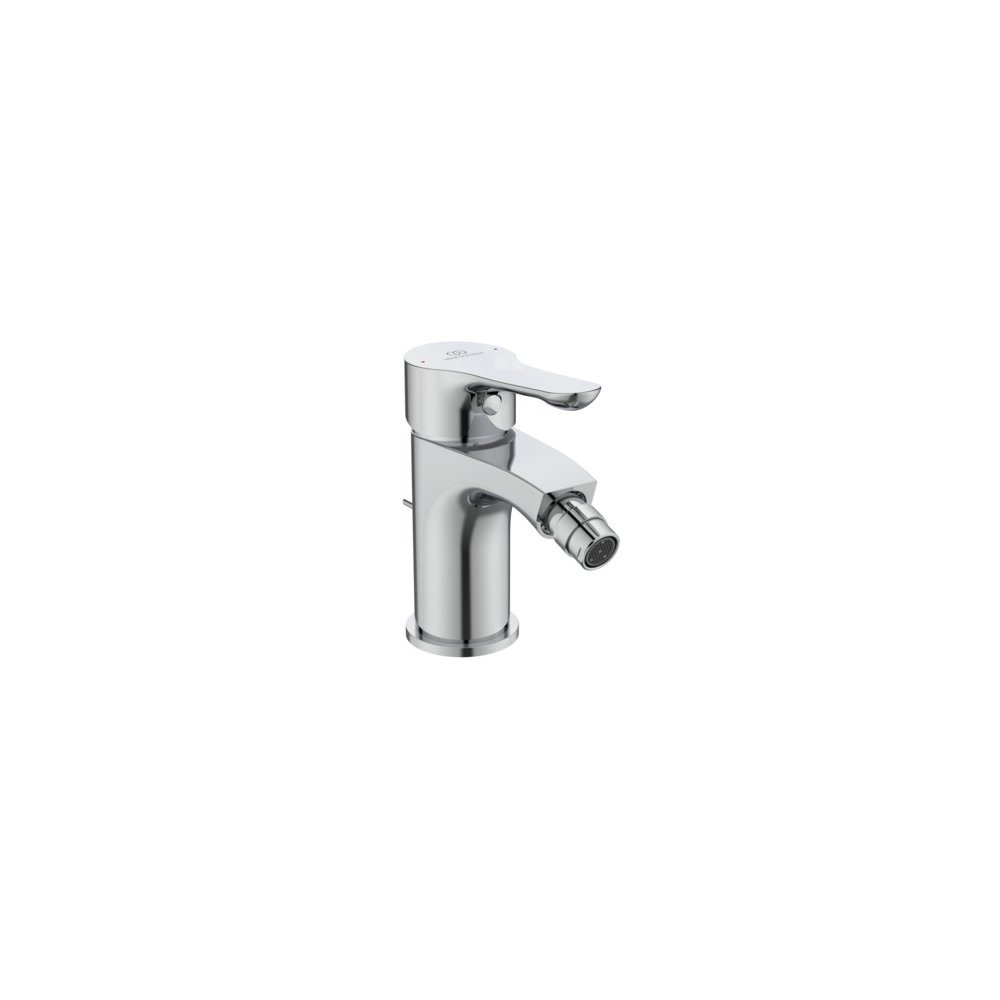 Bateria umywalkowa stojąca BlueStart. Głowica ceramiczna, 35 mm z ogranicznikiem temperatury. Metalowy uchwyt z nadrukowanymi czerwonymi i niebieskimi oznaczeniami. Technologia Cold Start - przepływ wody zimnej wody. Aerator (perlator) z ogranicznikiem przepływu wody do 5 l/min. System montażu Easy-Fix. Wężyki przyłączeniowe G3/8”. Plastikowy korek automatyczny.