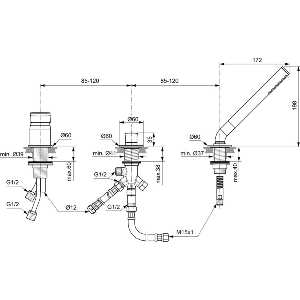 - Podtyp produktu: Bateria wannowo-prysznicowa montowana na brzegu wanny