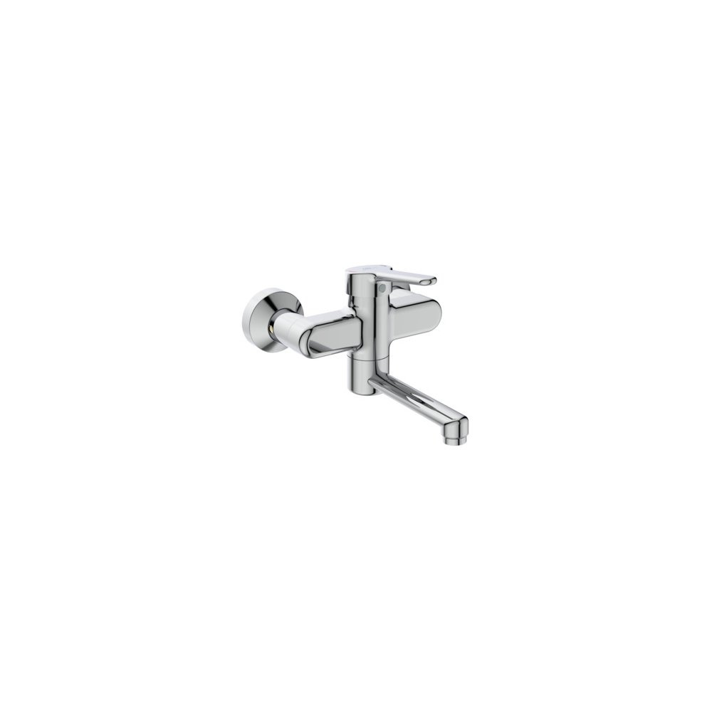 Odlewany korpus z wylewką zapewniającą samoczynny odpływ wody. Ruchoma wylewka dł 150 mm. Metalowy uchwyt dł. 100 mm. z nadrukowanymi czerwonymi i niebieskimi oznaczeniami. Bez metalowego korka automatycznegoWandaloodporny aerator ograniczający napowietrzenie strumienia wody. Ogranicznik przepływu w głowicy do 8,4 l/min. Wężyki przyłączeniowe PEX G3/8". Głowica ceramiczna 38 mm z ogranicznikiem temperatury. System montażu EASY-FIX. Przyłącza z funkcją odcięcia dopływu wody. Klasa akustyczna 1. Zgodna z EN817. Wszystkie materiały w baterii które mają kontakt z wodą pitną są zgodne z wymaganiami KTW, ACS i WRAS.