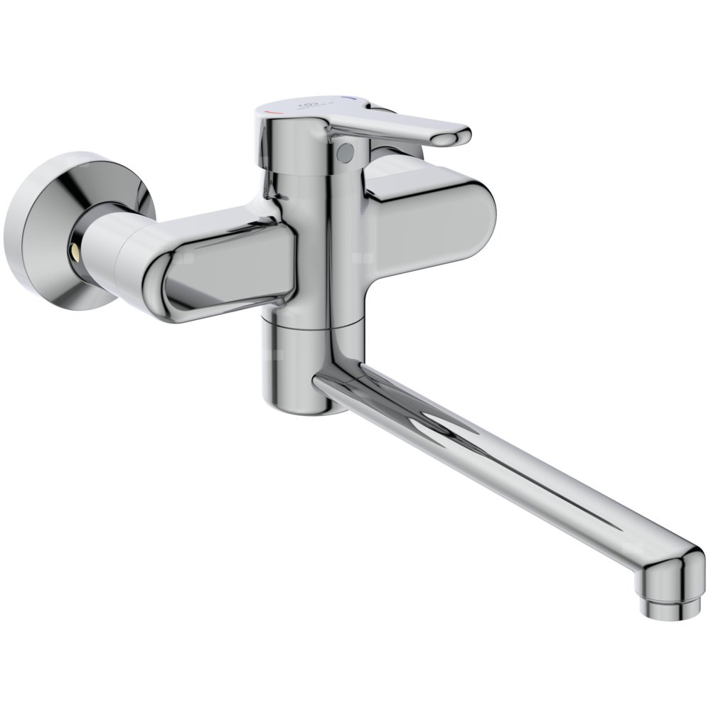 Odlewany korpus z wylewką zapewniającą samoczynny odpływ wody. Ruchoma wylewka dł 250 mm. Metalowy uchwyt dł. 100 mm. z nadrukowanymi czerwonymi i niebieskimi oznaczeniami. Bez metalowego korka automatycznegoWandaloodporny aerator ograniczający napowietrzenie strumienia wody. Ogranicznik przepływu w głowicy do 8,4 l/min. Wężyki przyłączeniowe PEX G3/8". Głowica ceramiczna 38 mm z ogranicznikiem temperatury. System montażu EASY-FIX. Przyłącza z funkcją odcięcia dopływu wody. Klasa akustyczna 1. Zgodna z EN817. Wszystkie materiały w baterii które mają kontakt z wodą pitną są zgodne z wymaganiami KTW, ACS i WRAS.