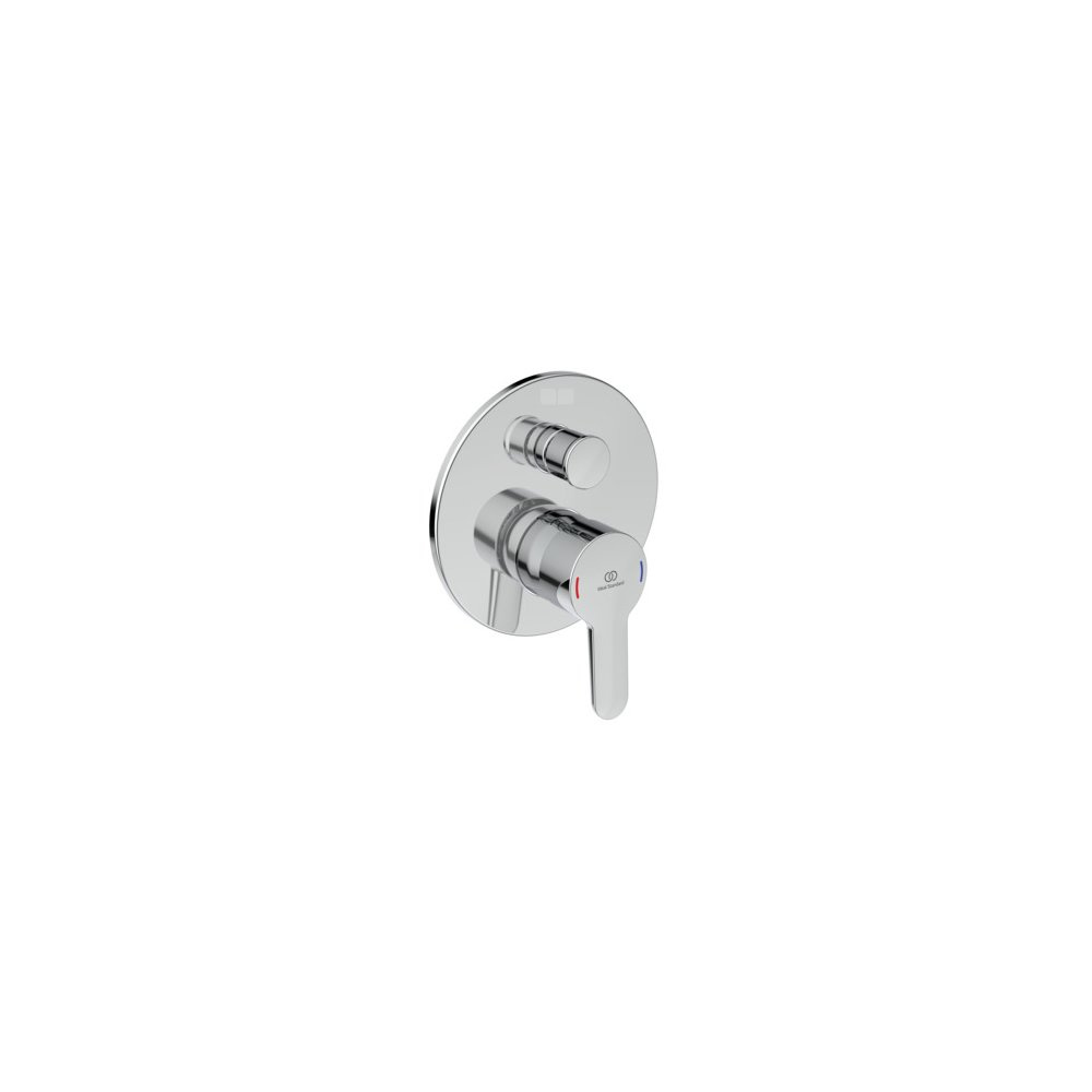 Zestaw montażowy baterii wannowo-natryskowej podtynkowej Ceraplus 2. Automatyczny przełącznik. Głowica ceramiczna IS 47 mm CLICK z funkcją ECO i ogranicznikiem temperatury. Metalowy uchwyt z nadrukowanymi czerwonymi i niebieskimi oznaczeniami, chromowana metalowa rozeta. Zgodna z EN817. Do skompletowania z uniwersalnym zestawem podtynkowym A1000NU.