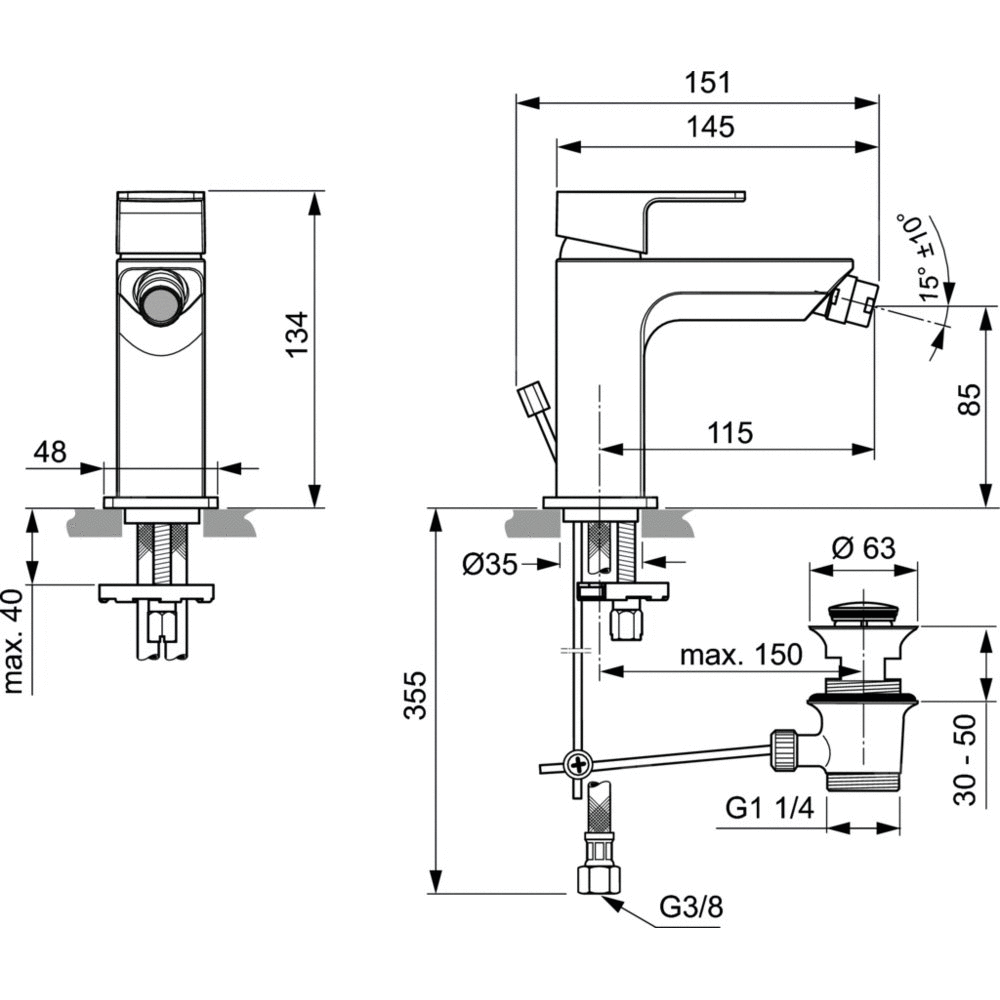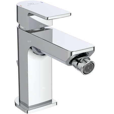 Bateria bidetowa z metalowym korkiem automatycznym. Głowica ceramiczna IS 28 mm. Smukły, mosiężny, odlewany korpus. Metalowy uchwyt z logo Ideal Standard oraz nadrukowanymi czerwonymi i niebieskimi oznaczeniami. Perlator M18x1 - z ogranicznikiem przepływu wody do 5l/min. Metalowy pierścień uszczelniający. Klasa akustyczna 1. Wężyki przyłączeniowe PEX G3/8". System montażu EASY-FIX. Zgodna z EN817.