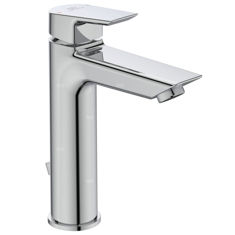 Tesi bateria umywalkowa Grande jednootworowa z metalowym automatycznym korkiem. Głowica ceramiczna IS 28 mm z ogranicznikiem temperatury. Mosiężny, odlewany korpus. Metalowy uchwyt z nadrukowanymi czerwonymi i niebieskimi oznaczeniami. Perlator Cascade. Wężyki przyłączeniowe G3/8".