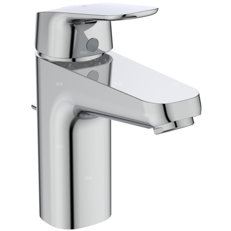 Bateria umywalkowa Grande z metalowym korkiem automatycznym. Głowica ceramiczna 40 mm z ogranicznikiem temperatury. Odlewany korpus z mosiądzu. Metalowy uchwyt z nadrukowanymi czerwonymi i niebieskimi oznaczeniami. Aerator typu Perlator, 5l/min. Wężyki przyłączeniowe G3/8”. System montażu EASY-FIX. Zgodność z EN817.
