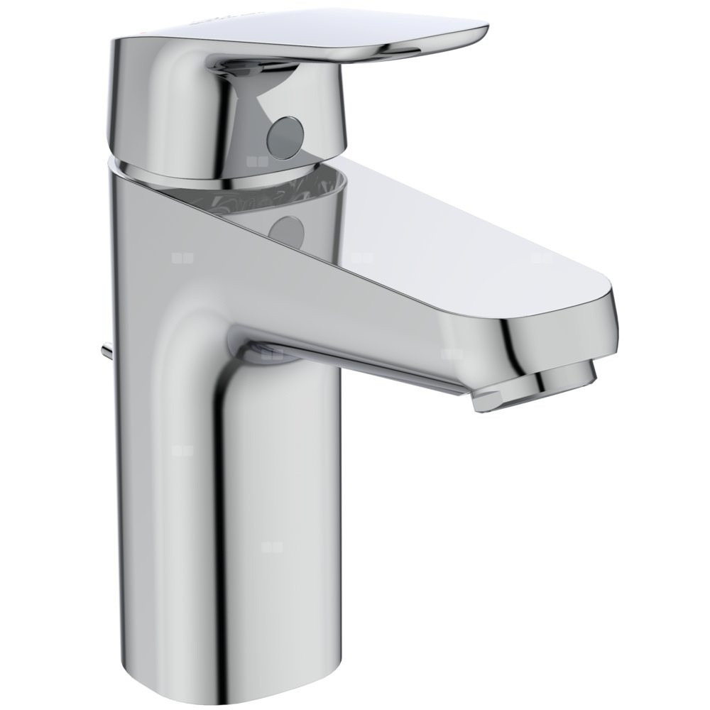 Bateria umywalkowa stojąca. Innowacyjna ceramiczna głowica FirmaFlow 38 mm, z funkcją. ograniczenia temperatury wody. Metalowy korpus. Metalowy uchwyt z oznaczeniem wody: ciepła/zimna. Smukły aerator (perlator) z ogranicznikiem przepływu wody. do 5 l/min. Korek automatyczny z tworzywa. Wężyki przyłączeniowe G3/8”. System montażu Easy-Fix. Zgodność z EN817.