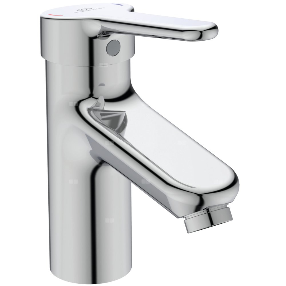 Odlewany korpus z wylewką zapewniającą samoczynny odpływ wody. Metalowy uchwyt dł. 110 mm. z nadrukowanymi czerwonymi i niebieskimi oznaczeniami. Bez metalowego korka automatycznego. Wandaloodporny aerator ograniczający napowietrzenie strumienia wody. Ogranicznik przepływu w głowicy do 8,4 l/min. Wężyki przyłączeniowe PEX G3/8". Głowica ceramiczna 38 mm z ogranicznikiem temperatury. System montażu EASY-FIX. Klasa akustyczna 1. Zgodna z EN817. Wszystkie materiały w baterii które mają kontakt z wodą pitną są zgodne z wymaganiami KTW, ACS i WRAS.