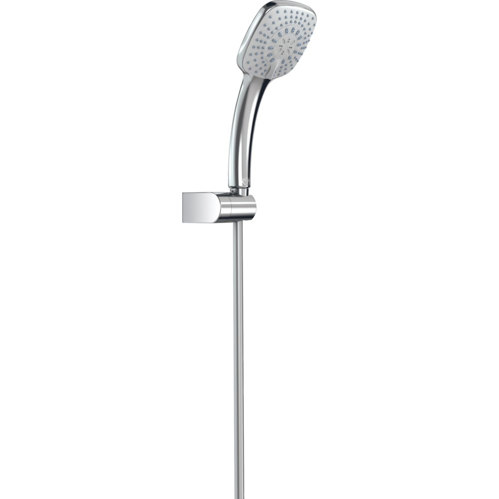 Zestaw natryskowy M3, trzyfunkcyjny, 100 mm. Słuchawka prysznicowa średnicy 100 mm. Gumowe końcówki dysz zapobiegające osadzaniu się kamienia. Ogranicznik przepływu wody do 8 l/min. Wąż natryskowy Idealflex, 1750 mm. Ruchomy uchwyt ścienny z tworzywa. Logo Ideal Standard.