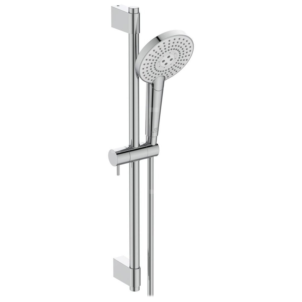 Metalowy drążek prysznicowy długości 600 mm. Regulowane metalowe mocowanie słuchawki. Wąż Idealflex 1750 mm z tworzywa odpornego na osad kamienia. Trzyfunkcyjna słuchawka średnicy Ø 125 mm. Rodzaje strumienia wody: deszcz, drop jet, masaż. Wybór strumienia wygodnym przyciskiem Navigo. Gumowe końcówki dysz zapobiegające osadzaniu się kamienia. Ogranicznik przepływu wody do 8 l/min. Minimalne ciśnienie wody 0,1 bar.