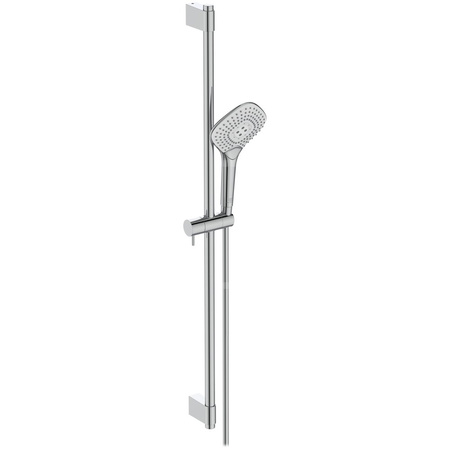 Metalowy drążek prysznicowy długości 900 mm. Regulowane metalowe mocowanie słuchawki. Wąż Idealflex 1750 mm z tworzywa odpornego na osad kamienia. Trzyfunkcyjna słuchawka średnicy Ø 134 mm. Rodzaje strumienia wody: deszcz, drop jet, masaż. Wybór strumienia wygodnym przyciskiem Navigo. Gumowe końcówki dysz zapobiegające osadzaniu się kamienia. Ogranicznik przepływu wody do 8 l/min. Minimalne ciśnienie wody 0,1 bar.
