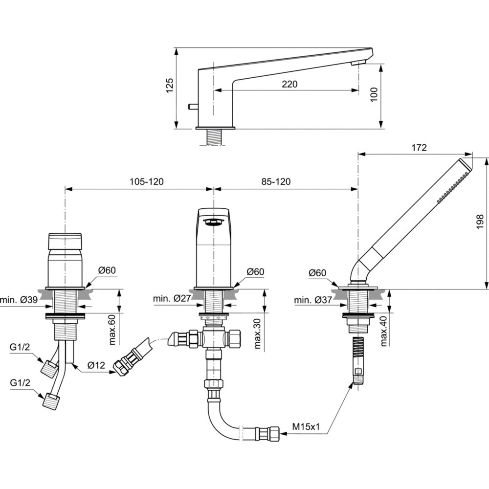 • Podtyp produktu: Bateria wannowo-prysznicowa montowana na brzegu wanny