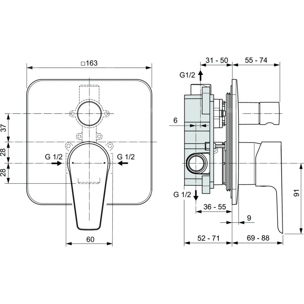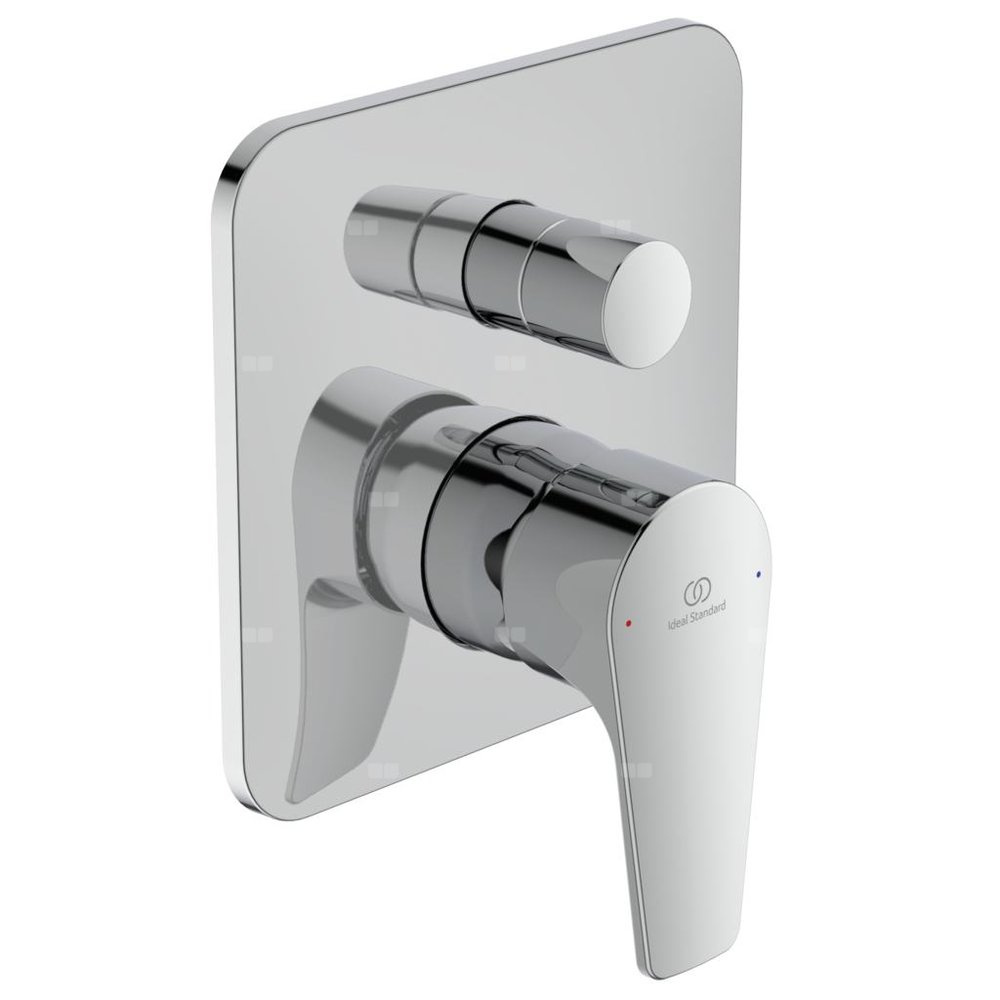 Zestaw montażowy podtynkowej baterii wannowo-natryskowej (kompletny). Głowica IS 47 mm CLICK. Automatyczny przełącznik. Metalowy uchwyt z nadrukowanymi czerwonymi i niebieskimi oznaczeniami oraz metalowa rozeta. Wykończenie: galwaniczne (AA), malowane proszkowo (U8). Zgodność z EN817.