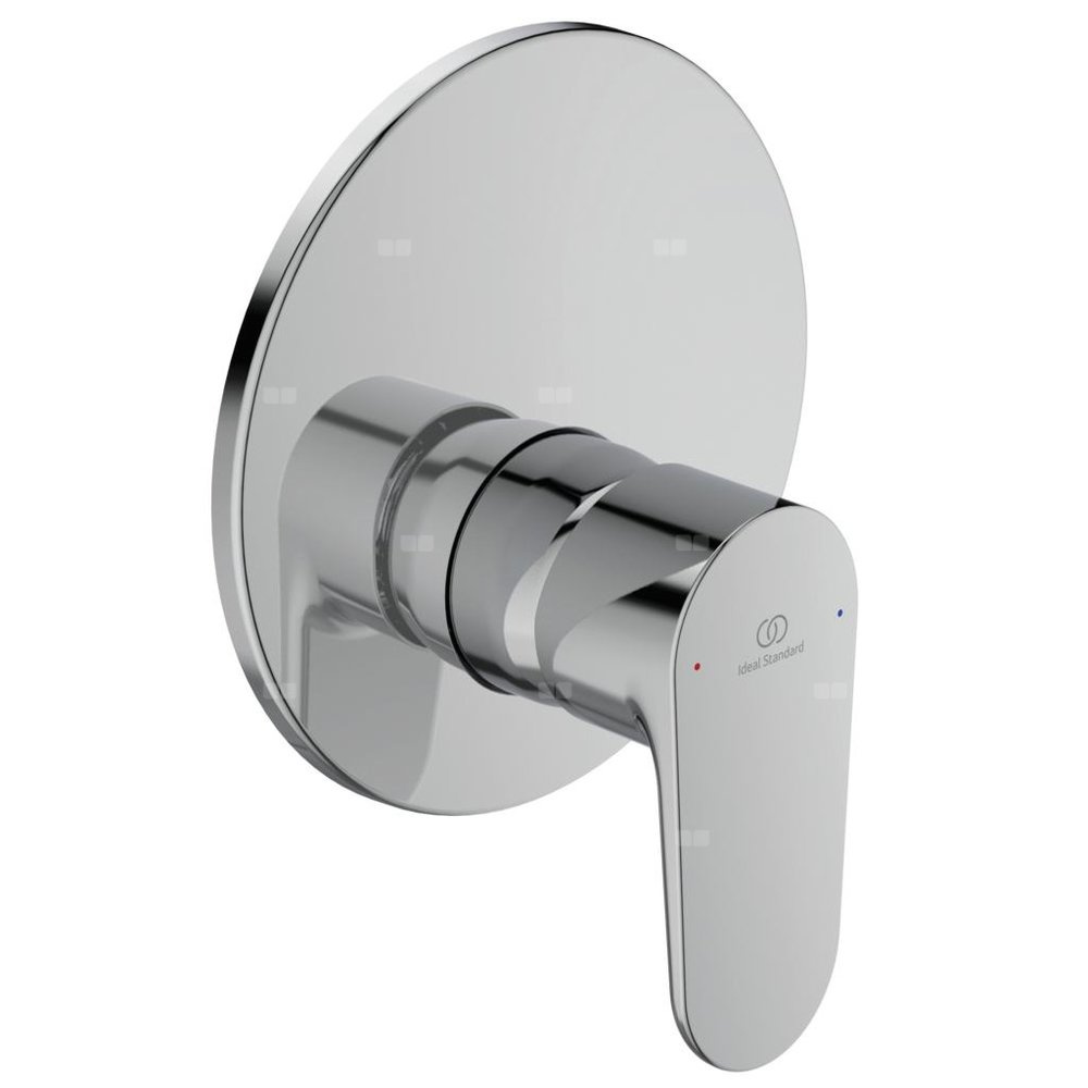 Zestaw montażowy (widoczna część). Głowica 47 mm CLICK. Metalowy uchwyt z nadrukowanymi czerwonymi i niebieskimi oznaczeniami. Chromowana rozeta z tworzywa. Zgodność z EN817. Do skompletowania z uniwersalnym zestawem podtynkowym A1000NU.