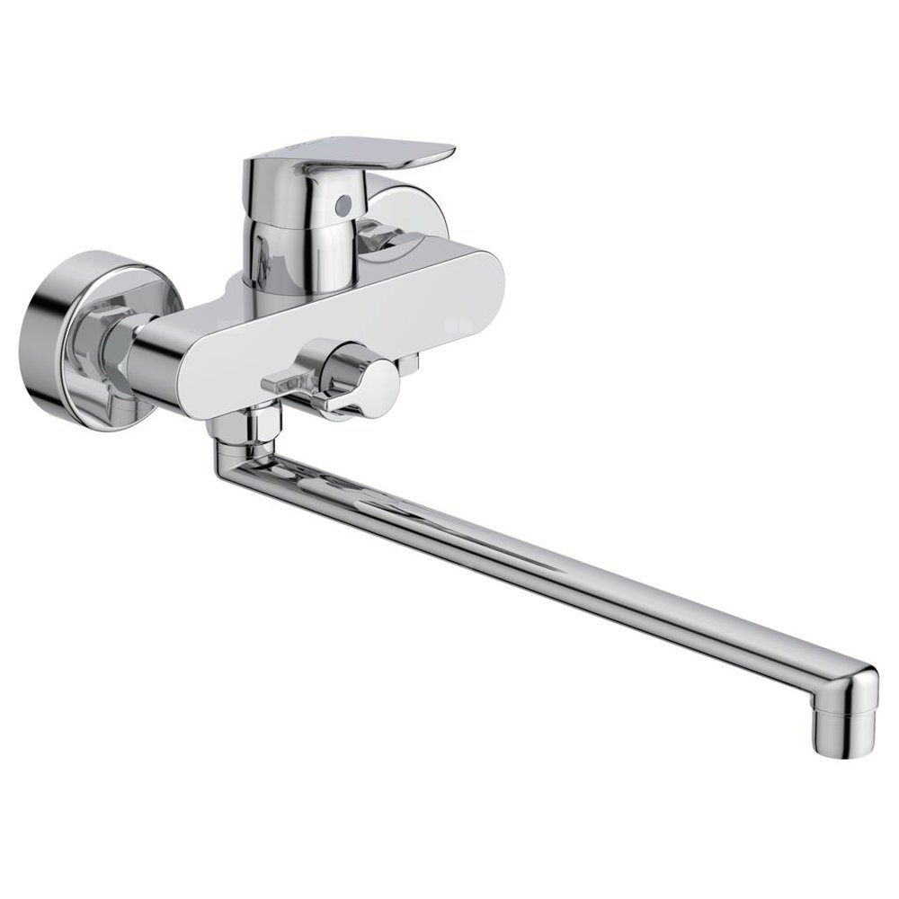 Głowica ceramiczna 38 mm CLICK z funkcją ECO. Ogranicznik temperatury wody. Przełącznik manulany. Wylewka długości 320 mm. Aerator typu Perlator. Metalowy uchwyt z oznaczeniem wody ciepłej i zimnej. Standardowe przyłącza ścienne. Zawór zwrotny. Zgodna z EN817.