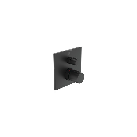 Zestaw montażowy podtynkowej baterii termostatycznej natryskowej (część zewnętrzna). Głowica termostatyczna IS. Ceramiczny zawór talerzowy 3/4'' włącz/wyłącz 90°. Bez przełącznika oraz akcesoriów. Uchwyt z przyciskiem ograniczającym temperaturę wody do 40°C. Metalowa chromowana rozeta o wymiarach 163 mm x 163 mm x 10,5 mm, dodatkowo uszczelniona. Maksymalny przepływ wody przy ciśnieniu 3 bar - 26 l/min. Do skompletowania z elementem montażowym: A1000NU.