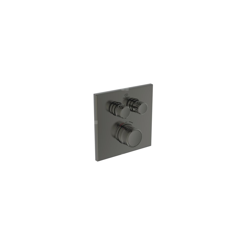 Zestaw montażowy podtynkowej baterii termostatycznej natryskowej Ceratherm Navigo. Bateria z dwomai przyciskami. Głowica FirmaFlow Therm z precyzyjną kontrolą temperatury. Uchwyt z ogranicznikiem temperatury do 40°C. Włączanie/wyłączanie odbywa się za pomocą wciskania przycisku a regulacja przepływu za pomocą obracania kolejnego. Smukła, kwadratowa, metalowa rozeta. Uszczelniony szyld pod rozetę izolujący wodę od ściany. Do skompletowania z zestawem A1000NU (część wewnętrzna).
