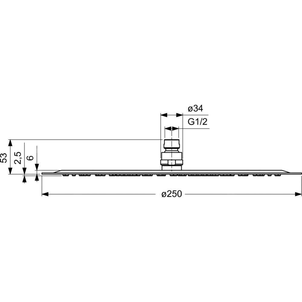 Głowica prysznicowa 250x53x250 mm w wykończeniu ze stali nierdzewnej 12 l/min (3 bary), łatwe w czyszczeniu dysze - IDEALRAIN LUXE