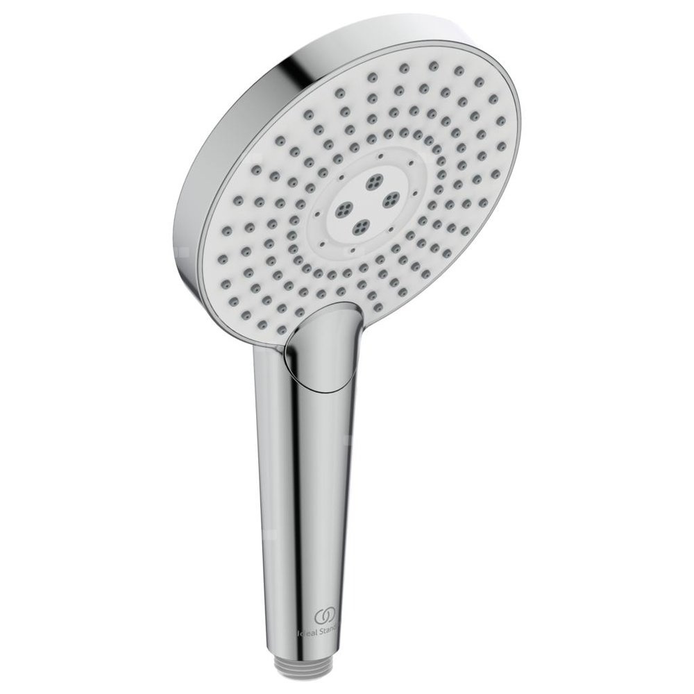 Trzyfunkcyjna słuchawka prysznicowa średnicy Ø 125 mm. Wybór strumienia wygodnym przyciskiem Navigo. Gumowe końcówki dysz zapobiegające osadzaniu się kamienia. Rodzaje strumienia wody: deszcz, drop jet, masaż. Ogranicznik przepływu wody do 8 l/min. Minimalne ciśnienie wody 0,1 bar.