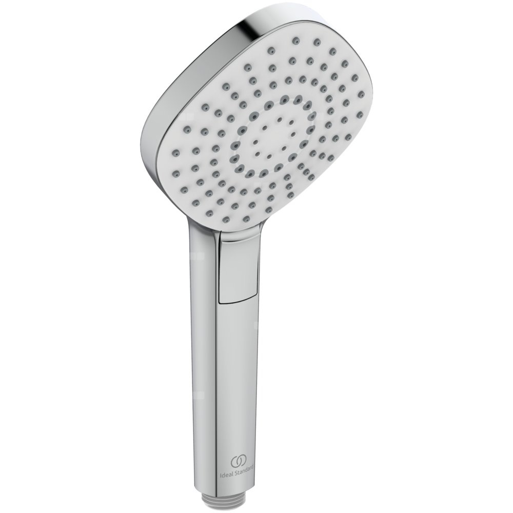 Trzyfunkcyjna słuchawka prysznicowa średnicy Ø 115 mm. Wybór strumienia wygodnym przyciskiem Navigo. Gumowe końcówki dysz zapobiegające osadzaniu się kamienia. Rodzaje strumienia wody: deszcz, drop jet, masaż. Ogranicznik przepływu wody do 8 l/min. Minimalne ciśnienie wody 0,1 bar.
