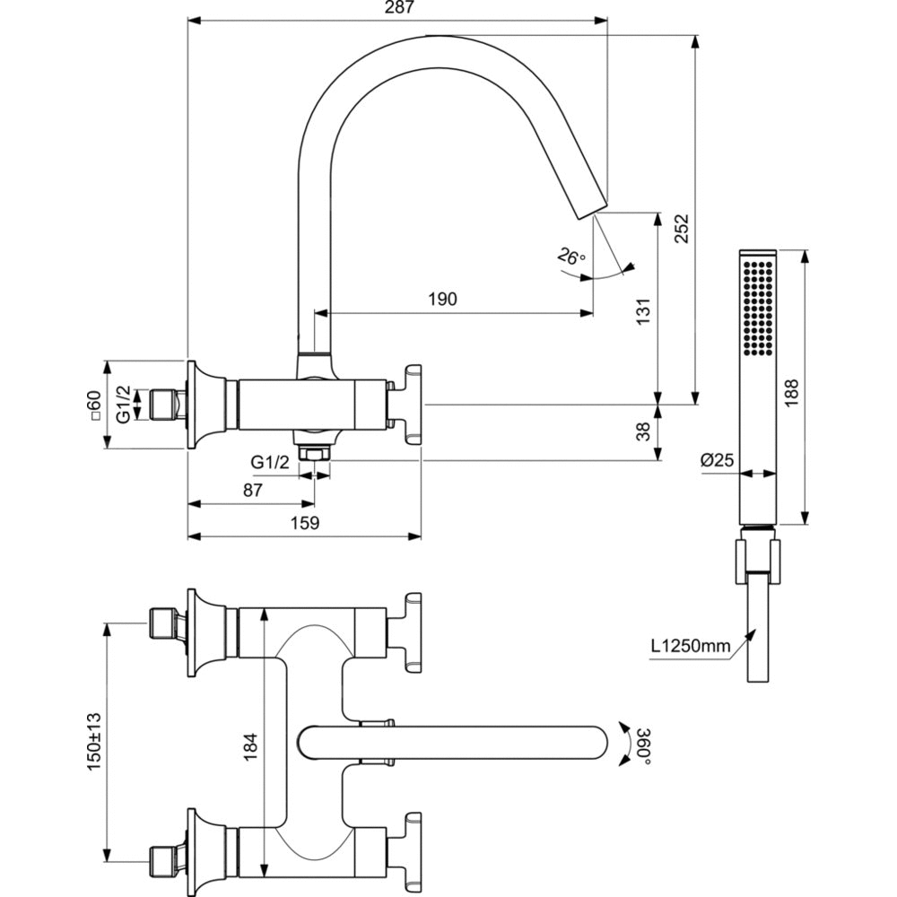 Bateria natryskowo-wannowa, Dual Control, uchwyty krzyżowe.