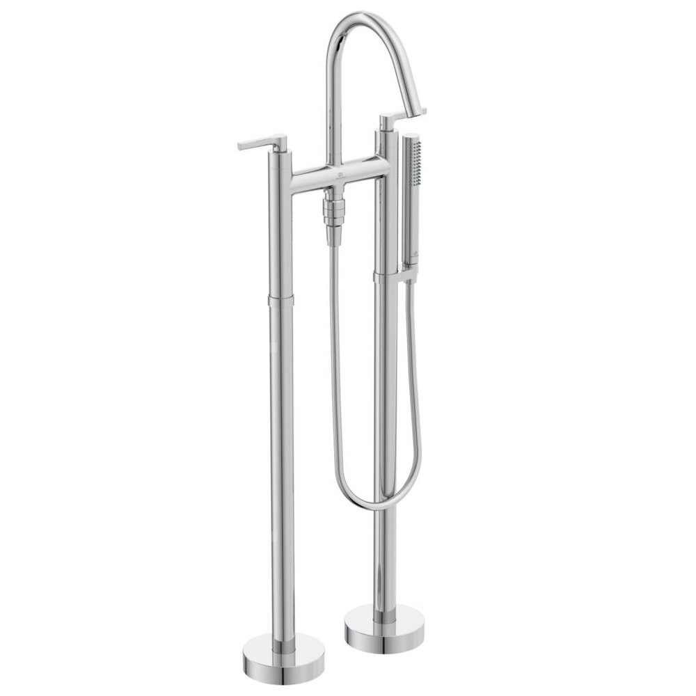 Bateria natryskowo-wannowa wolnostojąca, uchwyty dźwigniowe.