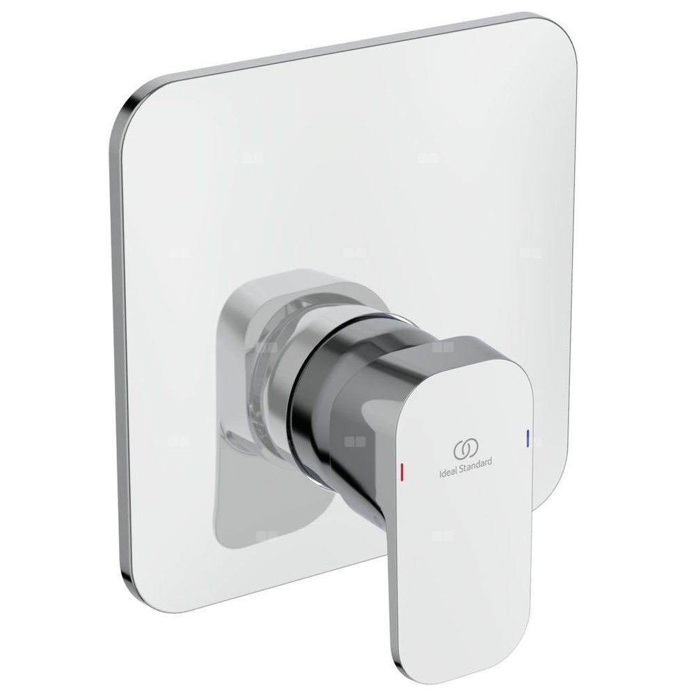 Zestaw montażowy baterii natryskowej podtynkowej. Głowica 47 mm CLICK z funkcją ECO i ogranicznikiem temperatury. Metalowa, smukła rozeta oraz metalowy uchwyt z nadrukowanymi czerwonymi i niebieskimi oznaczeniami. Do skompletowania z uniwersalnym zestawem podtynkowym A1000NU.