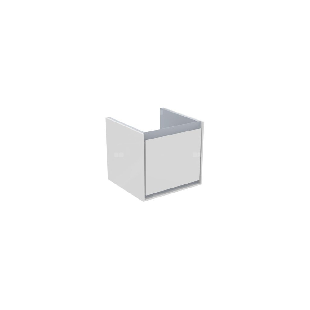 Wisząca. 1 szuflada ze zintegrowanym uchwytem. Szuflady z systemem samodomykania. Zestaw montażowy w komplecie. Szafka do skompletowania z: umywalką Cube 50 cm E074601. Zalecany: syfon oszczędzający przestrzeń EE23033967 (zamawiany oddzielnie).