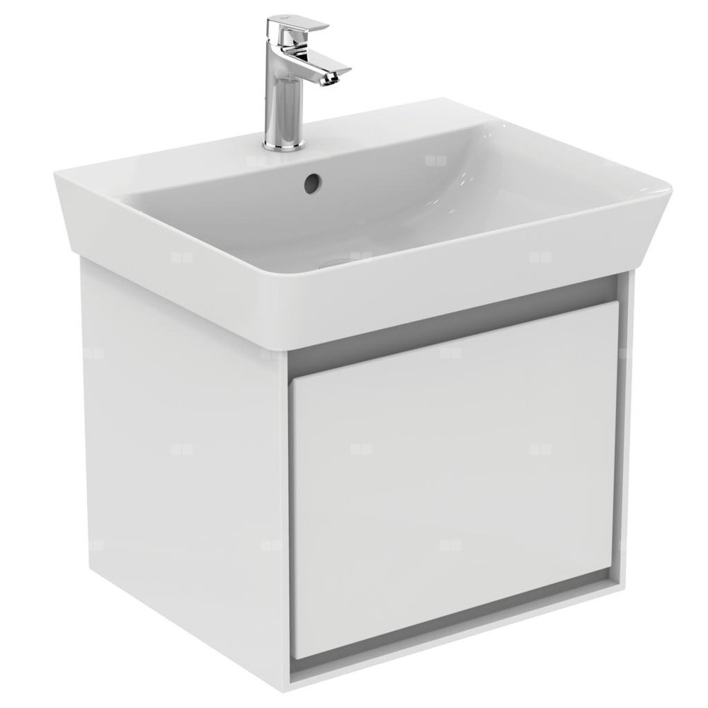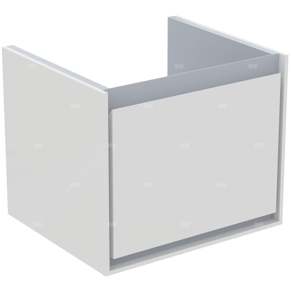 Wisząca. 1 szuflada ze zintegrowanym uchwytem. Szuflady z systemem samodomykania. Zestaw montażowy w komplecie. Szafka do skompletowania z: umywalką Cube 55 cm E074401. Zalecany: syfon oszczędzający przestrzeń EE23033967 (zamawiany oddzielnie).