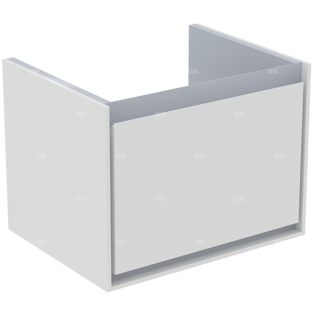 Wisząca. 1 szuflada ze zintegrowanym uchwytem. Szuflady z systemem samodomykania. Zestaw montażowy w komplecie. Szafka do skompletowania z: umywalką Cube 60 cm E074201. Zalecany: syfon oszczędzający przestrzeń EE23033967 (zamawiany oddzielnie).