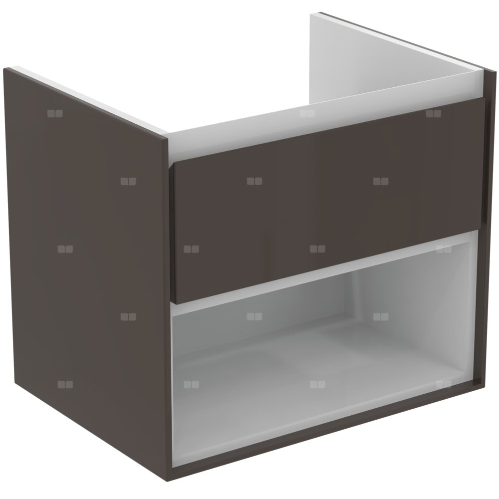 Wisząca 80 cm. 1 szuflada ze zintegrowanym uchwytem. Szuflady z systemem samodomykania. Otwarta dolna półka. Zestaw montażowy w komplecie. Szafka do skompletowania z: umywalką z powierzchniami bocznymi 64 cm E028901 lub. umywalką nablatową 60 cm E034801/40 cm E034701 z wymaganym blatem E0848. Zalecany: syfon oszczędzający przestrzeń EE23033967 (zamawiany oddzielnie).