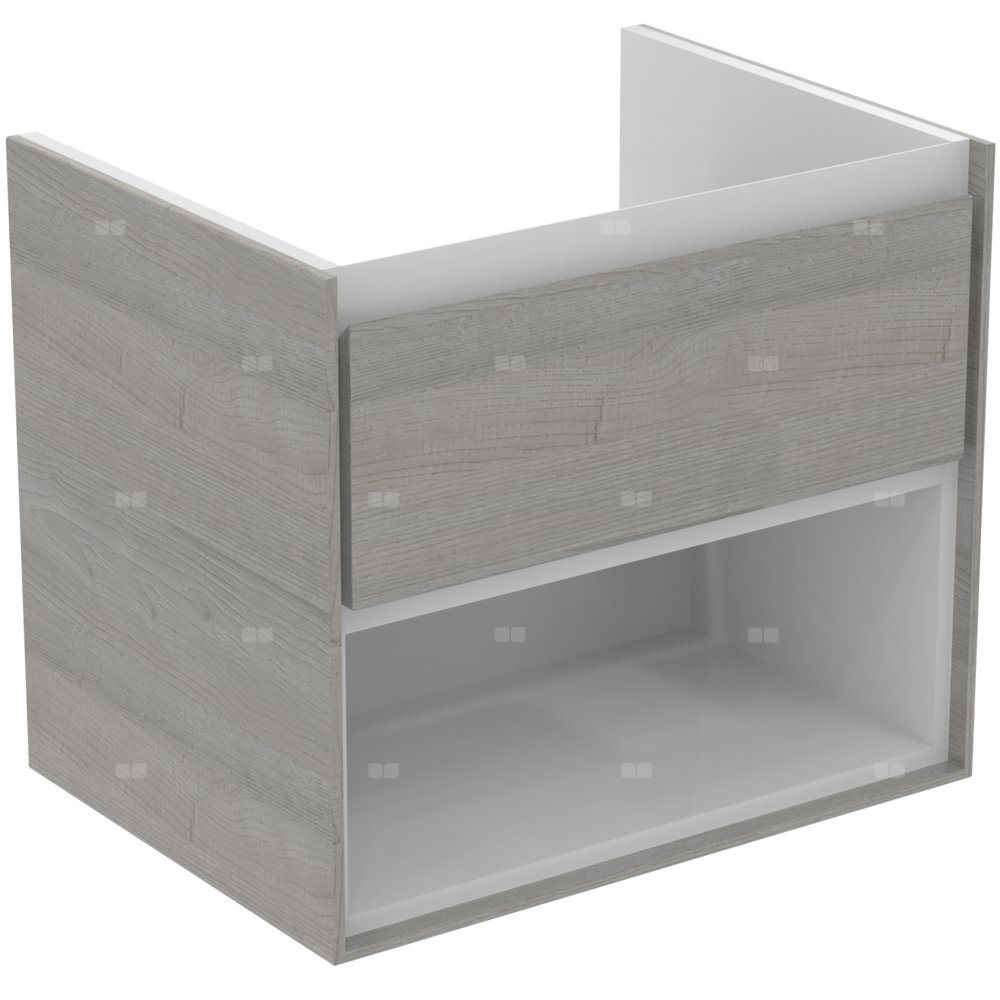 Wisząca 60 cm. 1 szuflada ze zintegrowanym uchwytem. Szuflady z systemem samodomykania. Otwarta dolna półka. Zestaw montażowy w komplecie. Szafka do skompletowania z: umywalką z powierzchniami bocznymi 64 cm E028901 lub. umywalką nablatową 60 cm E034801/40 cm E034701 z wymaganym blatem E0848. Zalecany: syfon oszczędzający przestrzeń EE23033967 (zamawiany oddzielnie).