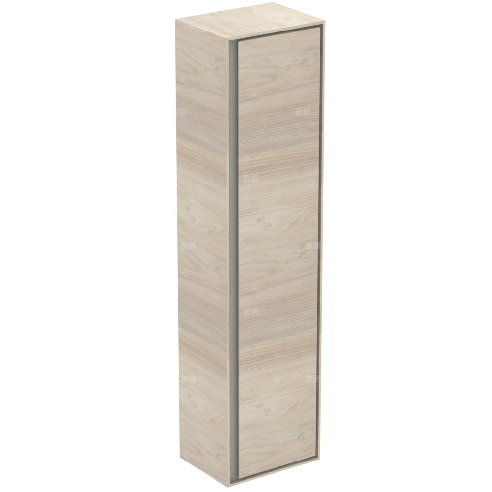 Szafka wisząca, odwracalna. Drzwi szafki ze zintegrowanym uchwytem. System samodomykania. Wewnątrz: 4 szklane półki. 1 wewnętrzna szuflada. Zestaw montażowy w komplecie.