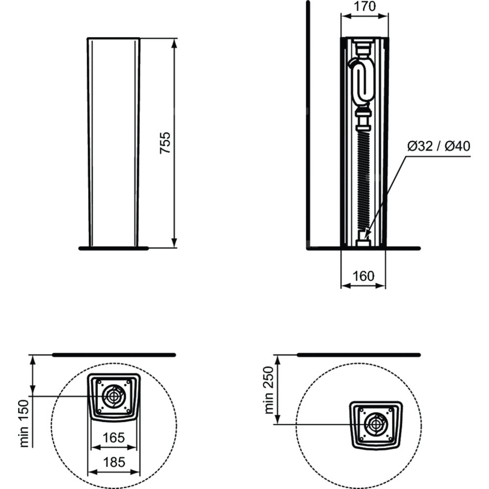 - Min. głębokość: 170 mm