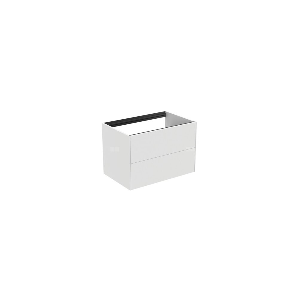 Szafka pod umywalkę z 2 zewnętrznymi szufladami do kompletowania z blatem ceramicznym 80 cm T3970. Blat ceramiczny (bez otworu/z otworem na zamówienie) zamawiany oddzielnie pod wymiar wybranej umywalki. Szuflady z funkcjami Push to open i wolnym zamykaniem. Wykończenie wewnętrzne szafek w kolorze antracytowym, pasujące do koloru szuflad.