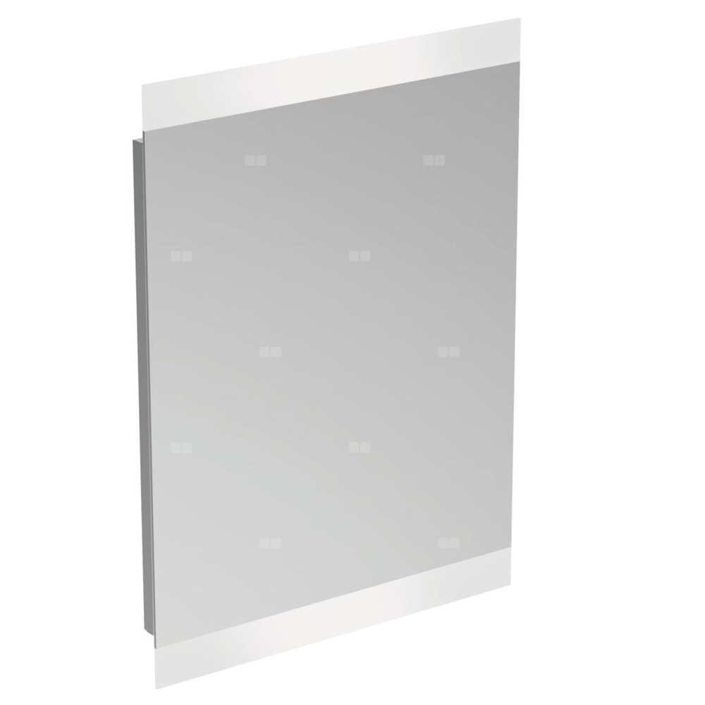 Lustro z oświetleniem High 50x70 cm. Odwracalne. Z systemem zapobiegającym parowaniu i ramą: mniejszą niż lustro. Oświetlenie LED: górne i dolne (dla umywalki). Włącznik do czujnika światła ze ściemniaczem i antyparą. Parametry: 220-240 V, 50-60 Hz, IP44, klasa II. Zestaw montażowy w komplecie.