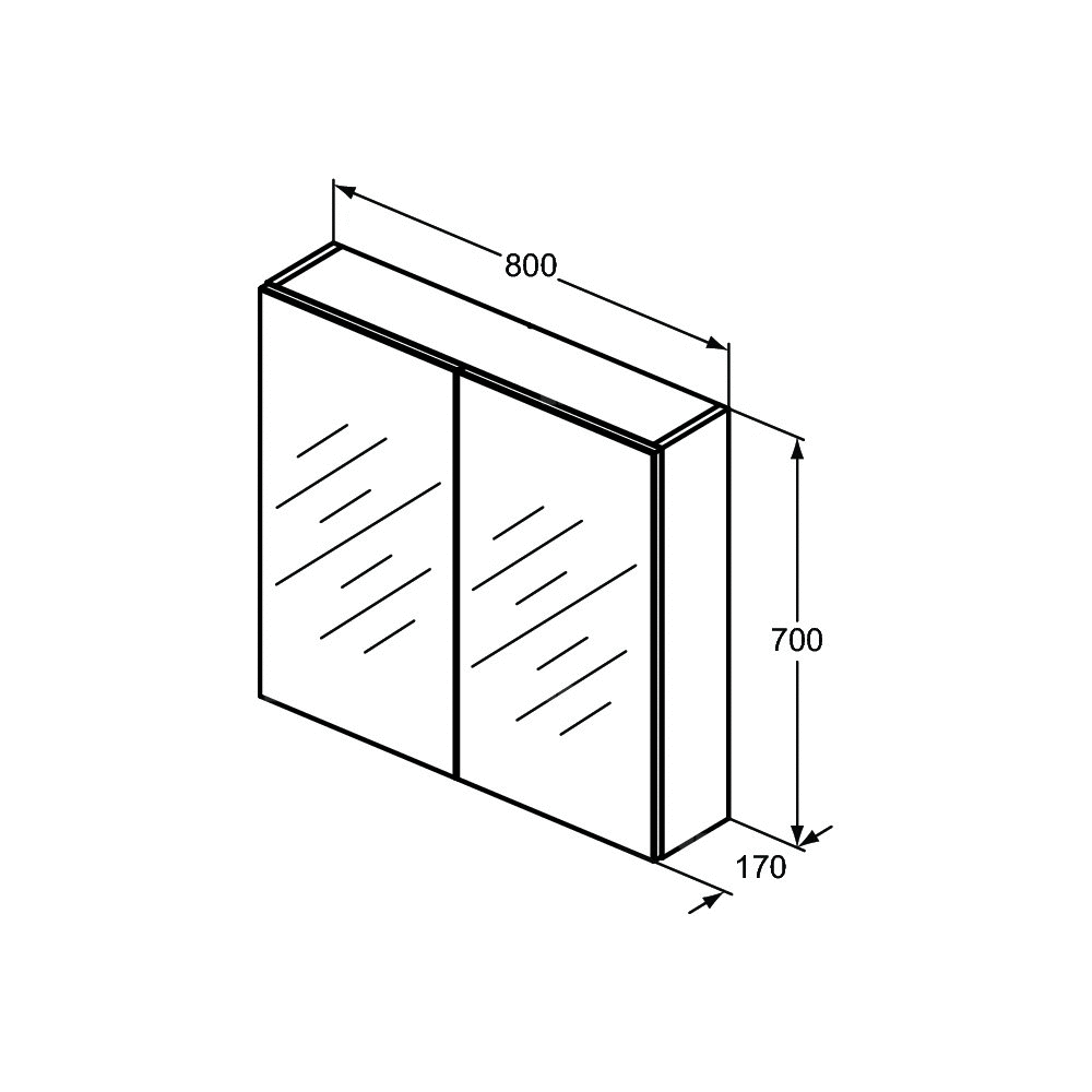 Szafka z lustrem z 2 drzwiami: 1-stronne lustrzane drzwi z systemem soft close. Wewnętrzne lusterko kometyczne. Samoprzylepny metalowy uchwyt i regulowana szklana półka. Komplet zawiera zestaw montażowy.